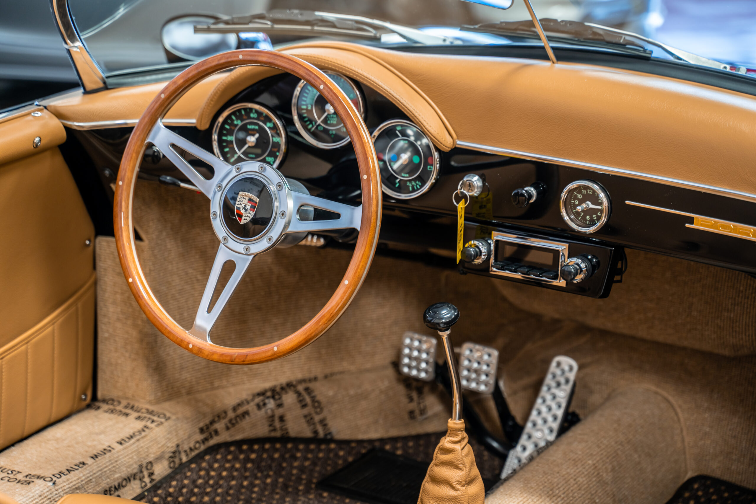 Vintage Motorcars specializes in creating Porsche 356 Speedster replicas. The Porsche 356 Speedster was introduced by Porsche in the late 1950s as a more affordable, stripped-down version of the 356 coupe, and became famous for its lightweight design, low profile, and sporty, open-top driving experience.
